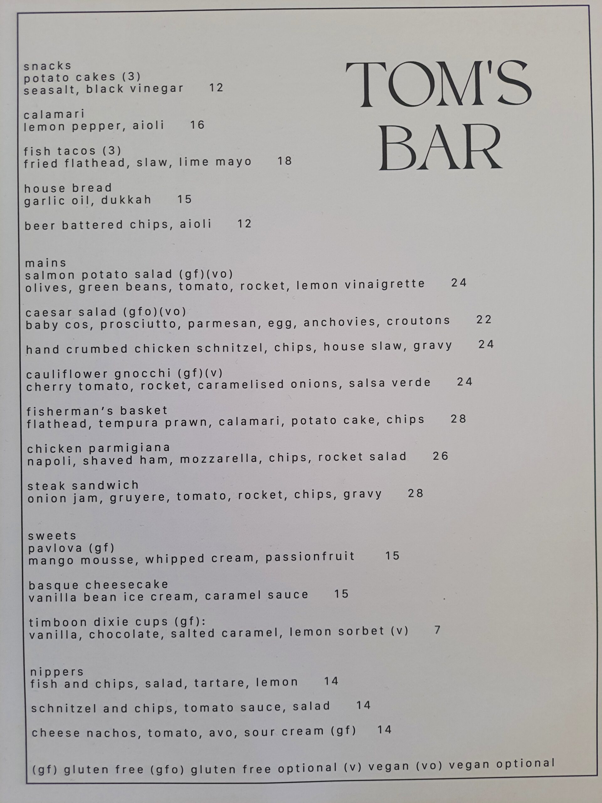 Tom’s Bar – Open for Lunch and Dinner most Summer days